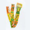 Bonbon relleno de chicle sabor; Naranja Soda con polvito acído, 12 unidades por tira.